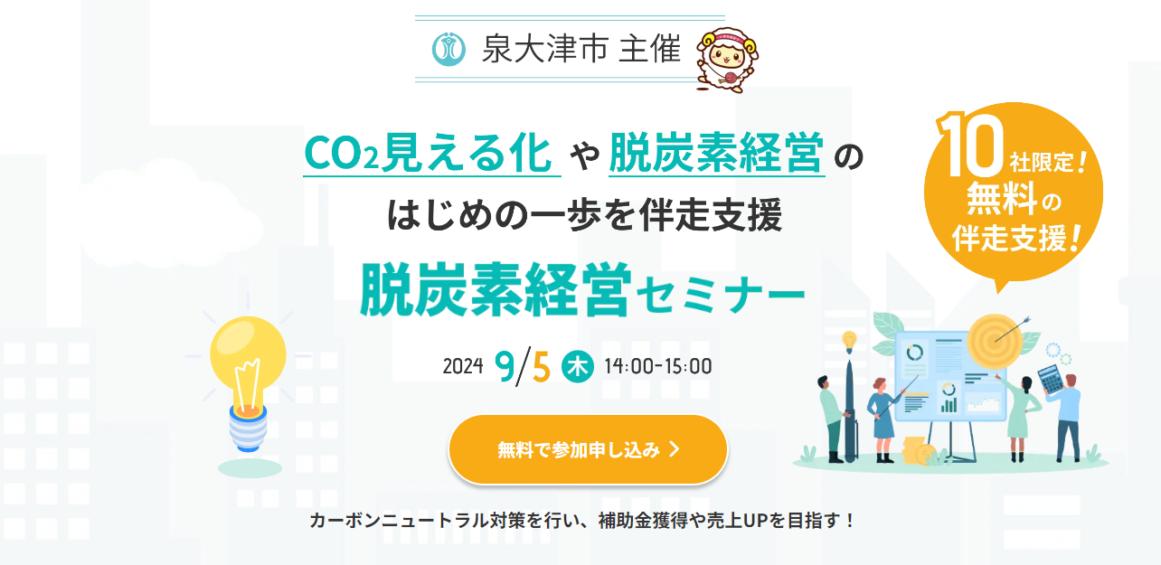 タンソチェックが大阪府泉大津市と連携して「CO2見える化や脱炭素経営の伴走支援セミナー」を開催【2024年9月5日(木)14:00~】